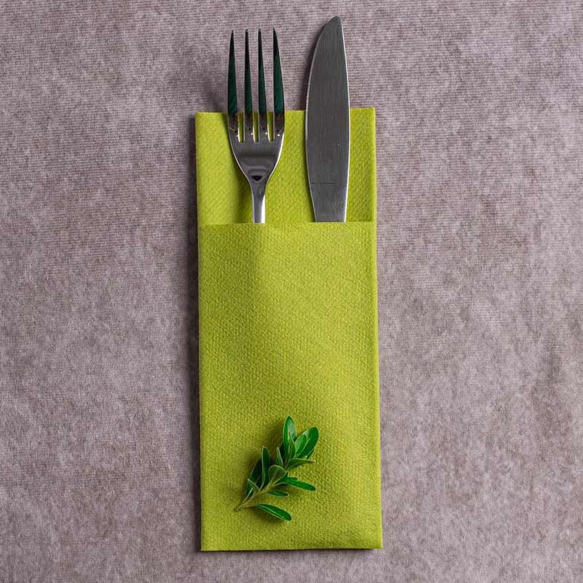 A vendéglátásban a színek és a részletek is számítanak. A pisztácia színű, textilhatású evőeszköztartós szalvéta nemcsak vizuálisan friss, üde hatást kelt, hanem kifejezetten praktikus megoldás is az éttermek és szállodák napi működéséhez.